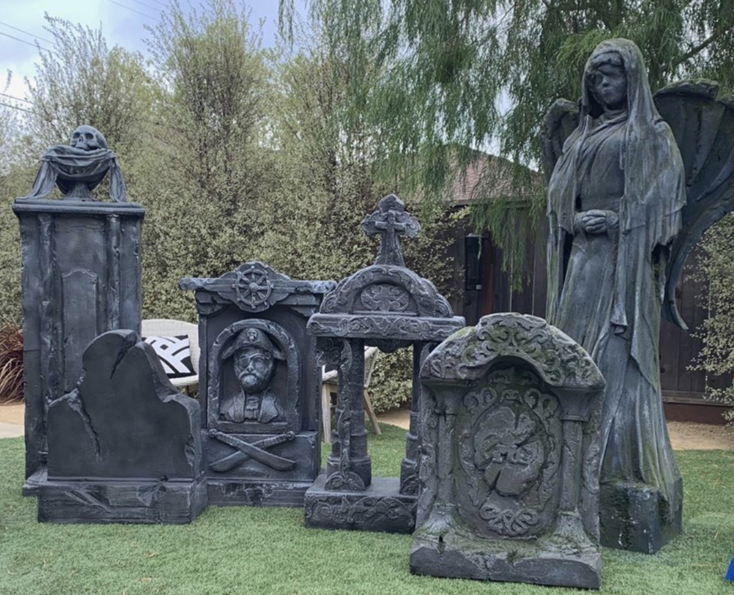 Home Depot, amazon, spirit halloween, you name it. but as for the tombstones and other unique pieces like the Venus fly trap ā I hand sculpt those myself from scratch.